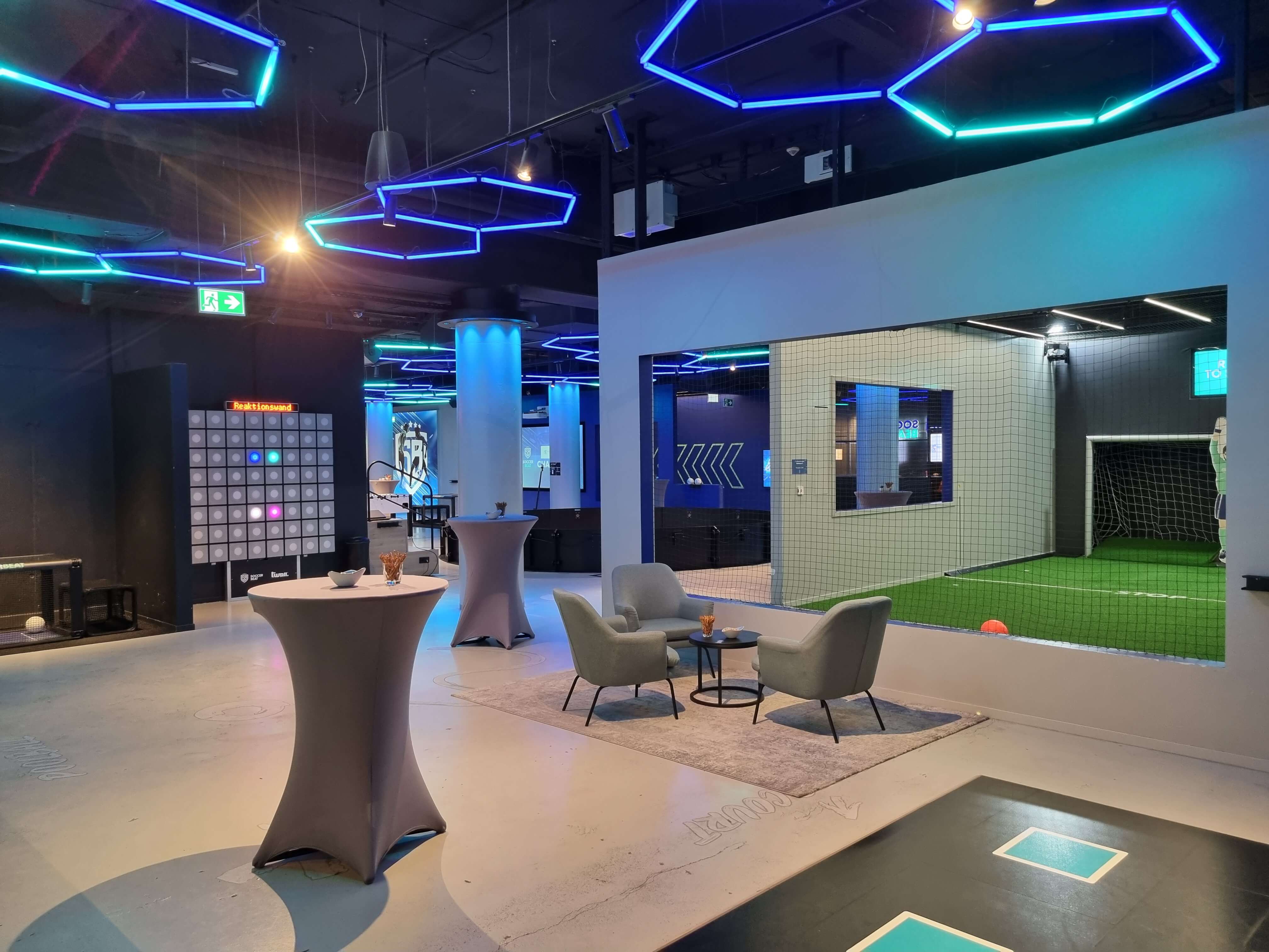 Ihr sucht eine stylische Event-Location, in der bereits alles Notwendige für Eure Veranstaltung vorhanden ist? Dann plant Euer nächstes Event in der SOCCERBEAT. Der Marktplatz ist frei und individuell nach Euren Wünschen gestaltbar.