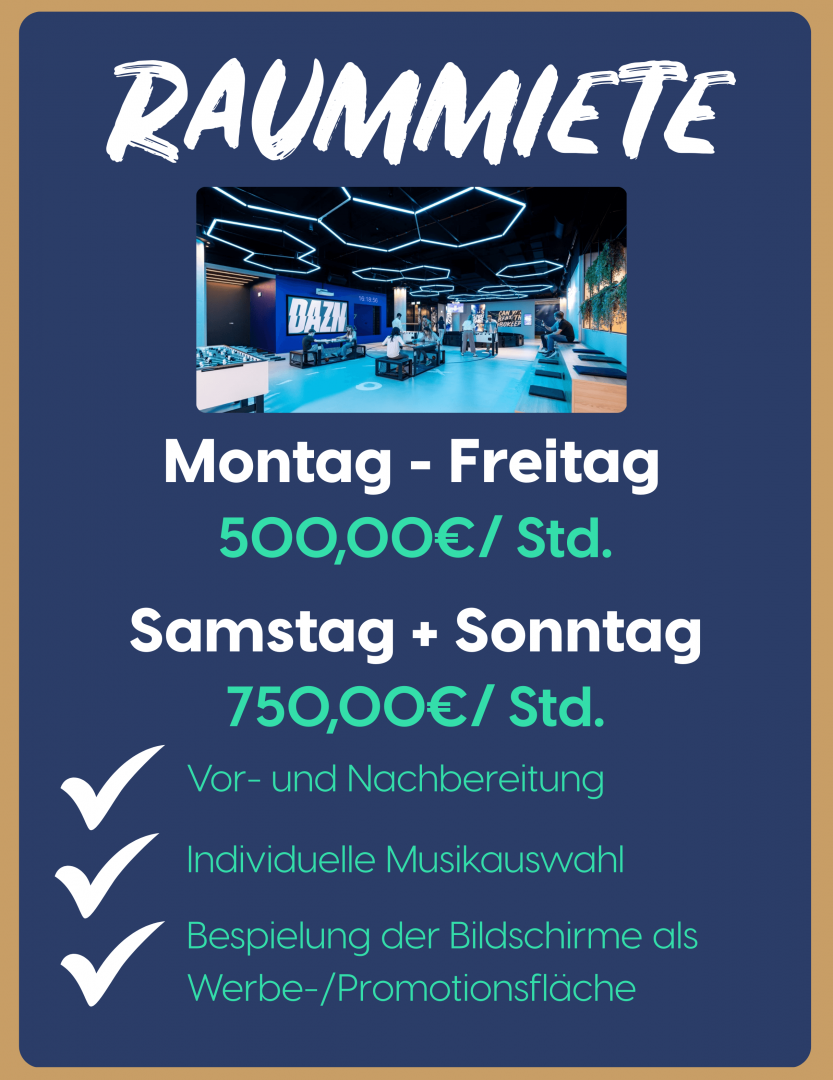Ihr sucht eine stylische Event-Location, in der bereits alles Notwendige für Eure Veranstaltung vorhanden ist? Dann plant Euer nächstes Event in der SOCCERBEAT.